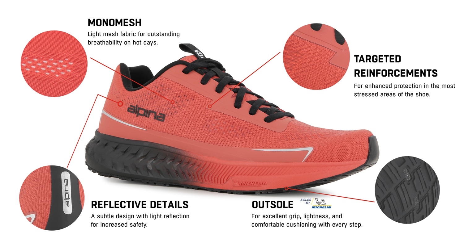 Alpina BOSTON on täiuslik vabaajajalats / linna-maastiku jalats (city trail) neile, kes hindavad mugavust, hingavust ja kindlat haarduvust ülikerges disainis. Olenemata sellest, kas oled aktiivne liikuja ja kasutad neid sporditegevusteks, või naudid vabaajajalutuskäike pargis – see jalats pakub erakordset sooritust, eriti kevad- ja suvehooajal.