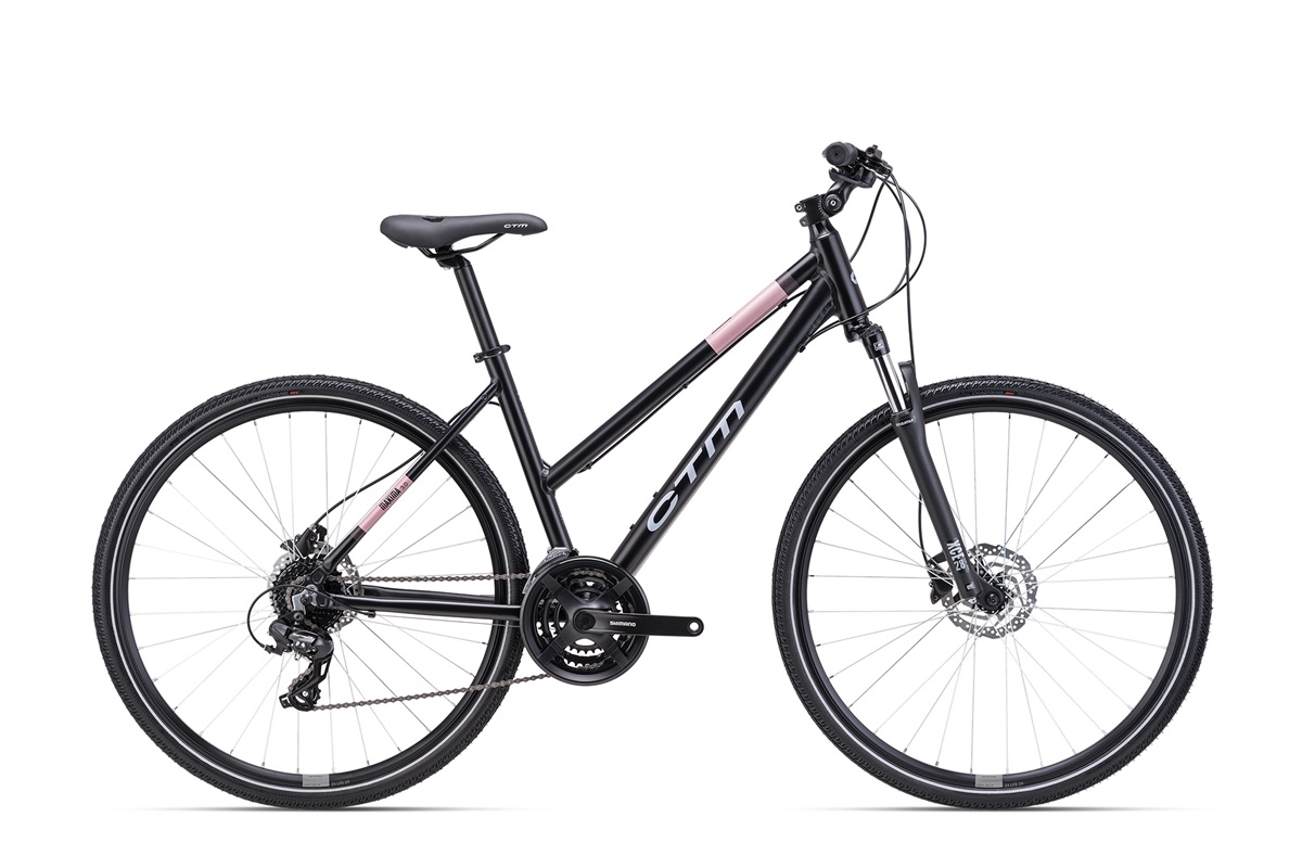 Stiilne 24 käiguga naiste hübriidratas CTM Maxima 3.0 – alumiiniumraam, 28-tollised rattad, Shimano käiguvahetajad, Shimano hüdraulilised ketaspidurid.
