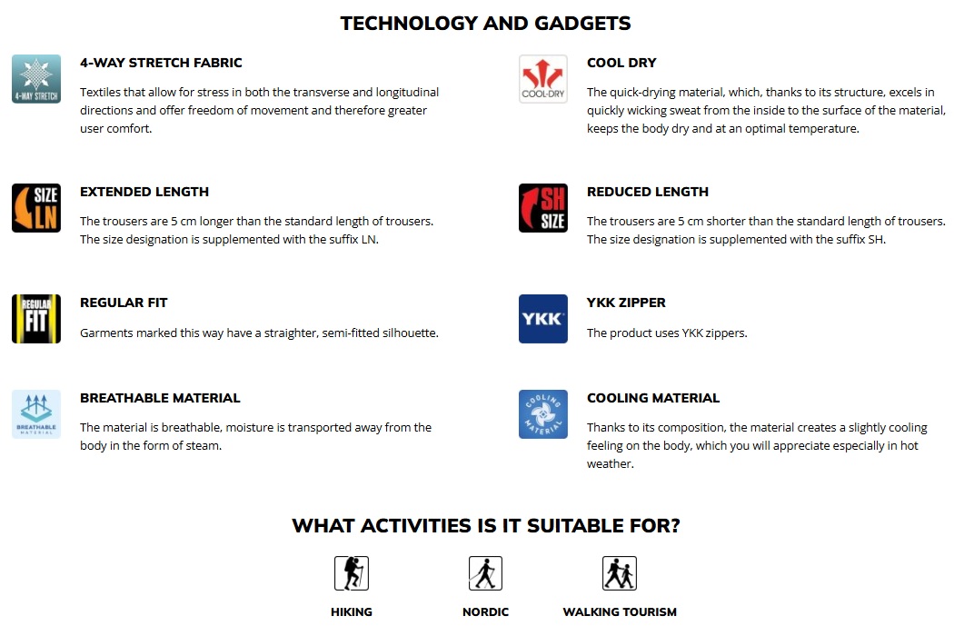 Funktsionaalsed meeste vabaajapüksid RAMEL 2 on valmistatud elastsest, hingavast, tuulekindlast ja kiiresti kuivavast COOL-DRY materjalist. Tänu sellele juhivad nad suurepäraselt niiskust, hoides keha kuivana ja optimaalsel temperatuuril. Püksid sobivad kandmiseks nii matkates, jalutuskäikudel looduses ja ka niisama igapäevaseks kandmiseks. Pükstel on vööaasad, 3 praktilist lukuga taskut, helkurdetailid ja anatoomiliselt eelvormitud põlved paremaks liikumisvabaduseks.