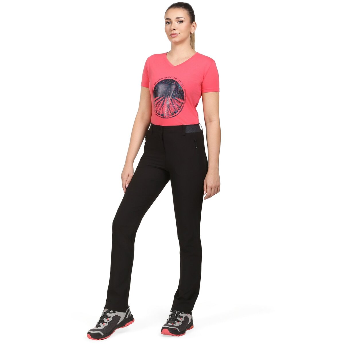 Funktsionaalsed naiste vabaajapüksid RAMELA 2 on valmistatud elastsest, hingavast, tuulekindlast ja kiiresti kuivavast COOL-DRY materjalist. Tänu sellele juhivad nad suurepäraselt niiskust, hoides keha kuivana ja optimaalsel temperatuuril. Püksid sobivad kandmiseks nii matkates, jalutuskäikudel looduses ja ka niisama igapäevaseks kandmiseks. Pükstel on vööaasad, 3 praktilist lukuga taskut, helkurdetailid ja anatoomiliselt eelvormitud põlved paremaks liikumisvabaduseks.