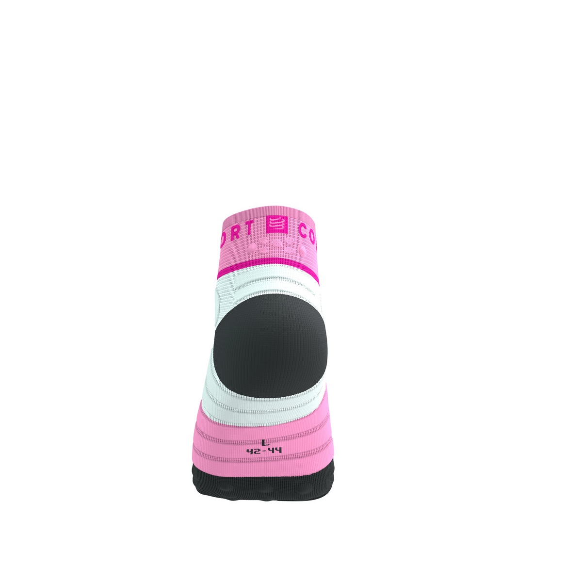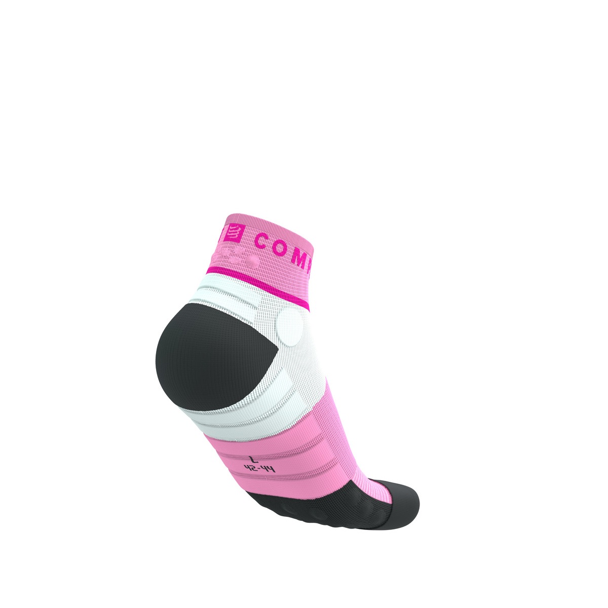 - 3D.DOTS’i (3D tehnoloogiliste punktide) ja Flat.Dots’i kombinatsioon soki tagaosas – pehmendav efekt, mis kaitseb Achilleuse kõõlust hõõrdumise ja surve eest. Pehmendavad punktid (3D.DOTS) on tihedamad ja paksemad, kui Compressport Run V4.0 jooksusokkidel.