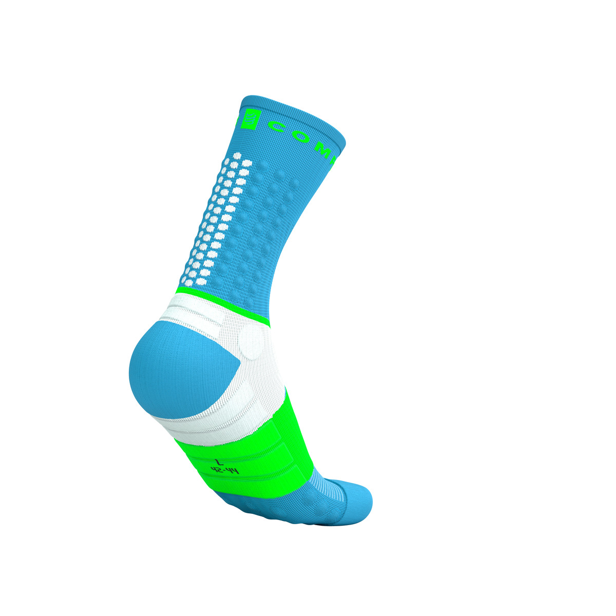 - Anatoomiline täpsus – sokid on disainitud järgides jala kuju (eraldi vasak ja parem jalg), mis tagab täiusliku istuvuse ja välistab üleliigse materjali kortsumise.