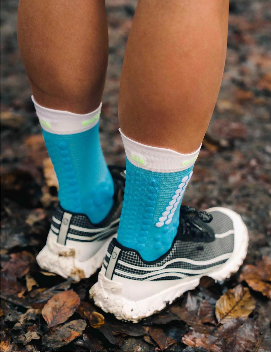 Maastikujooksusokid Compressport V4.0 TRAIL High – Norse Blue/Neon Green