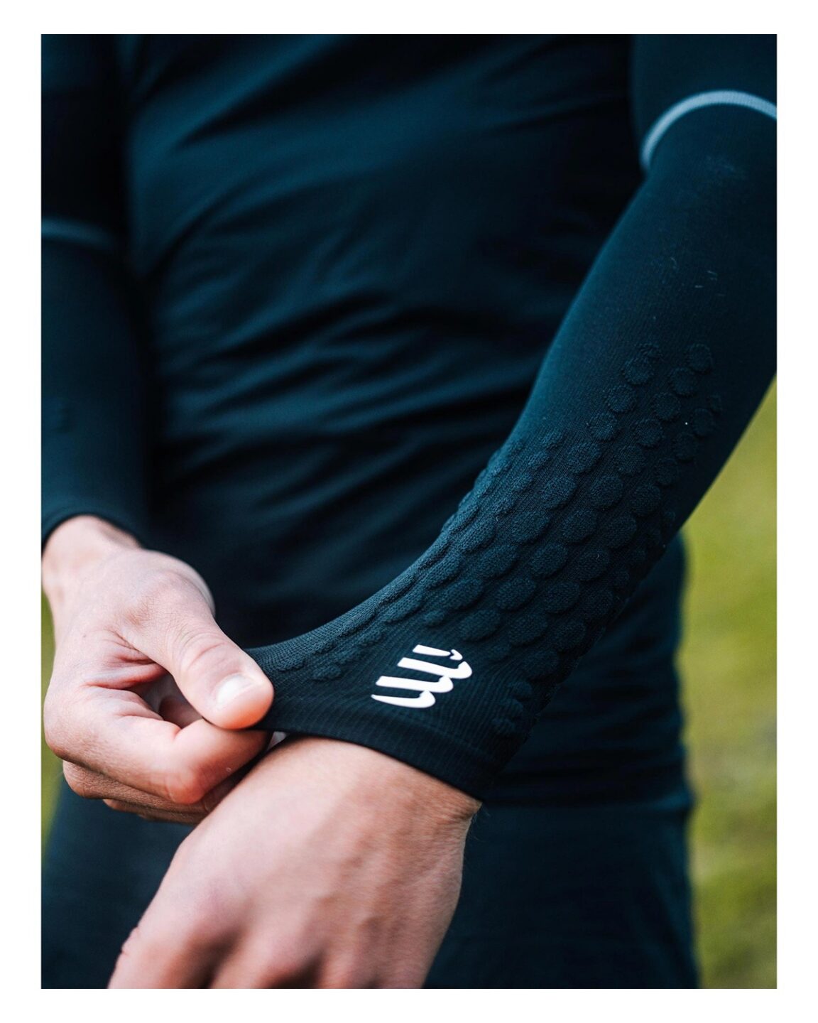 - Kerge kompressioon – toetab käsivarre lihaseid (biitseps, triitseps, küünarvars), vähendab mikrovibratsioone ja ennetab lihasväsimust.